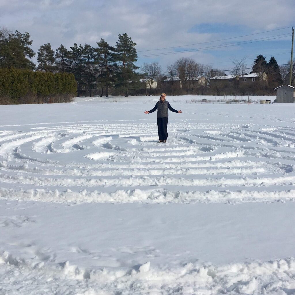 A labyrinth is a single winding path used to guild walking meditation, as it leads you from the outer edge to the centre on a circuitous path.